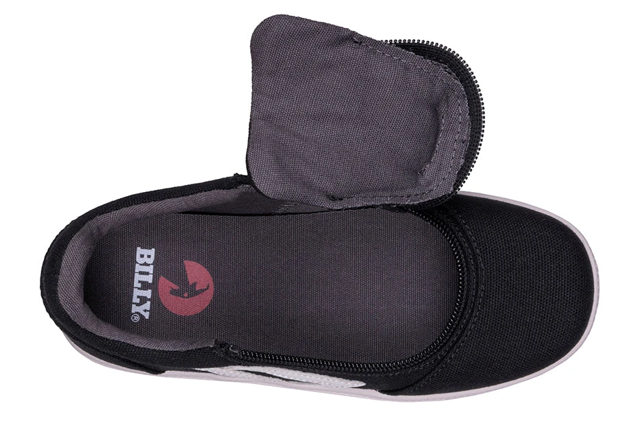 Inspired by a core-skate look, the Black/White BILLY CS Sneaker Low Tops are sure to deliver. These trending kicks embrace nostalgia, yet remain true to current style. Coming with functional laces for a custom fit, removable insoles for added depth, and a wraparound zipper for unmatched convenience, you’re going to feel good when you Step In!