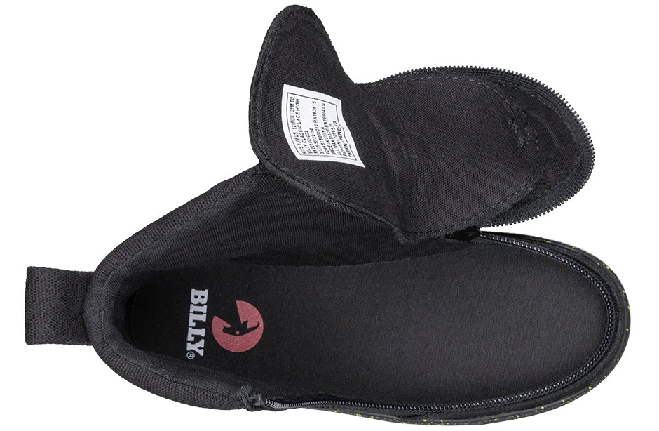 A classic silhouette with some added speckles thrown in, your kiddo is going to love their Black/Green Speckle BILLY Classic Lace High Tops. This silhouette features the full wrap zipper allowing the wearer unobstructed entry. Step in, zip up, and get after the day!