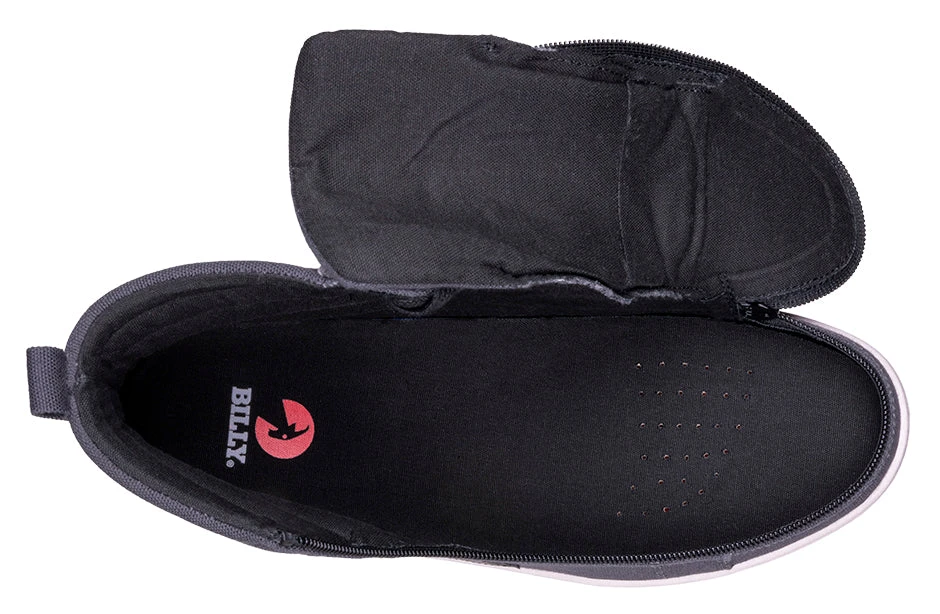 Inspired by a core-skate look, the Men’s Charcoal/Black BILLY CS Sneaker High Tops are sure to deliver. These trending kicks embrace nostalgia, yet remain true to current style. Coming with functional laces for a custom fit, removable insoles for added depth, and a wraparound zipper for unmatched convenience, you’re going to feel good when you Step In!